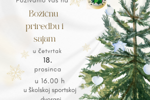 Pozivamo Vas na Božićnu priredbu i sajam u četvrtak 18. prosinca u 16.00 sati u Školskoj sportskoj dvorani. Veselimo se vašem dolasku!