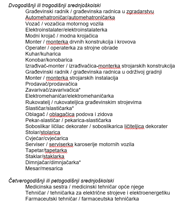 Srednja škola – deficitarna zanimanja