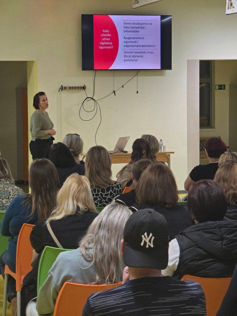Tijekom predavanja roditelji su imali priliku saznati više o tome kako djeca danas koriste internet, koliko vremena provode u digitalnom okruženju te s kakvim se izazovima mogu susresti na društvenim mrežama, u aplikacijama za dopisivanje i online igrama. Među učenicima je provedena anonimna anketa među učenicima od 5. do 8. razreda, čiji su rezultati pokazali da dio učenika provodi značajan dio vremena na internetu te da su se neki od njih već susreli s neugodnim situacijama u digitalnom okruženju. Rezultati ankete predstavljeni su roditeljima kako bi se potaknulo zajedničko promišljanje o tome kako djeci pomoći da se sigurnije i odgovornije kreću digitalnim svijetom.
